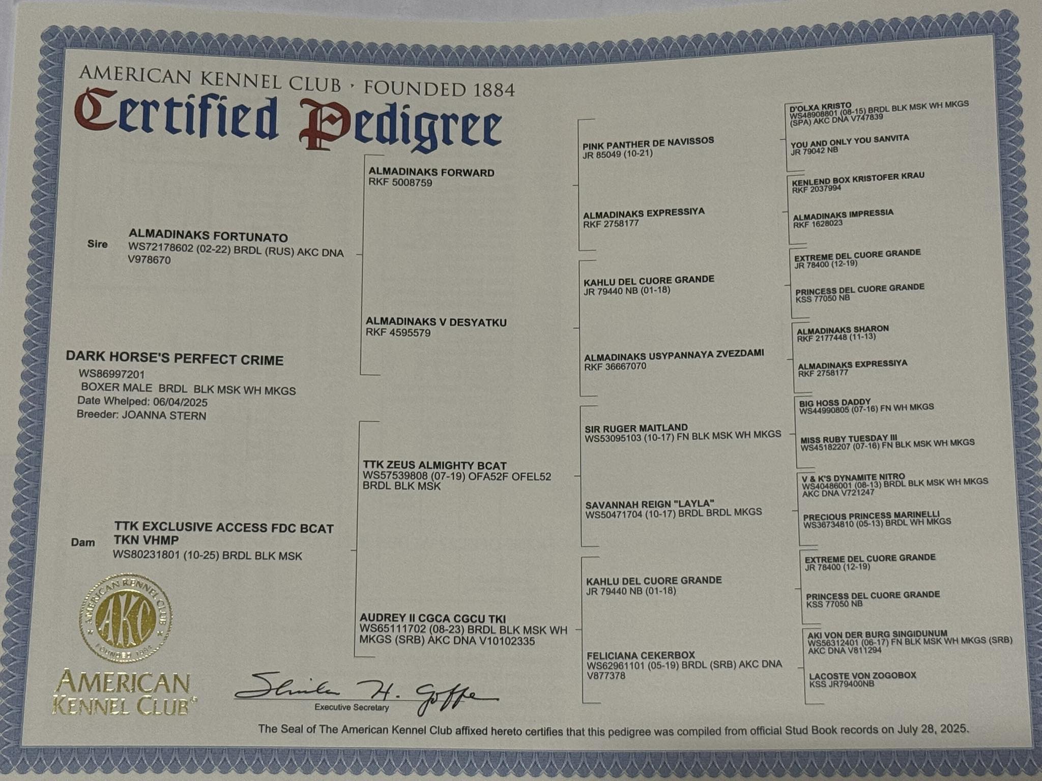 AKC Registration: WS86997201